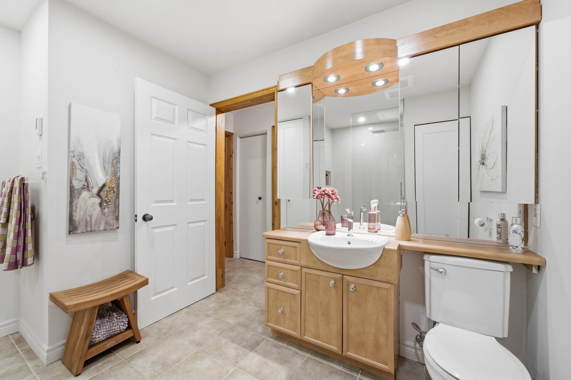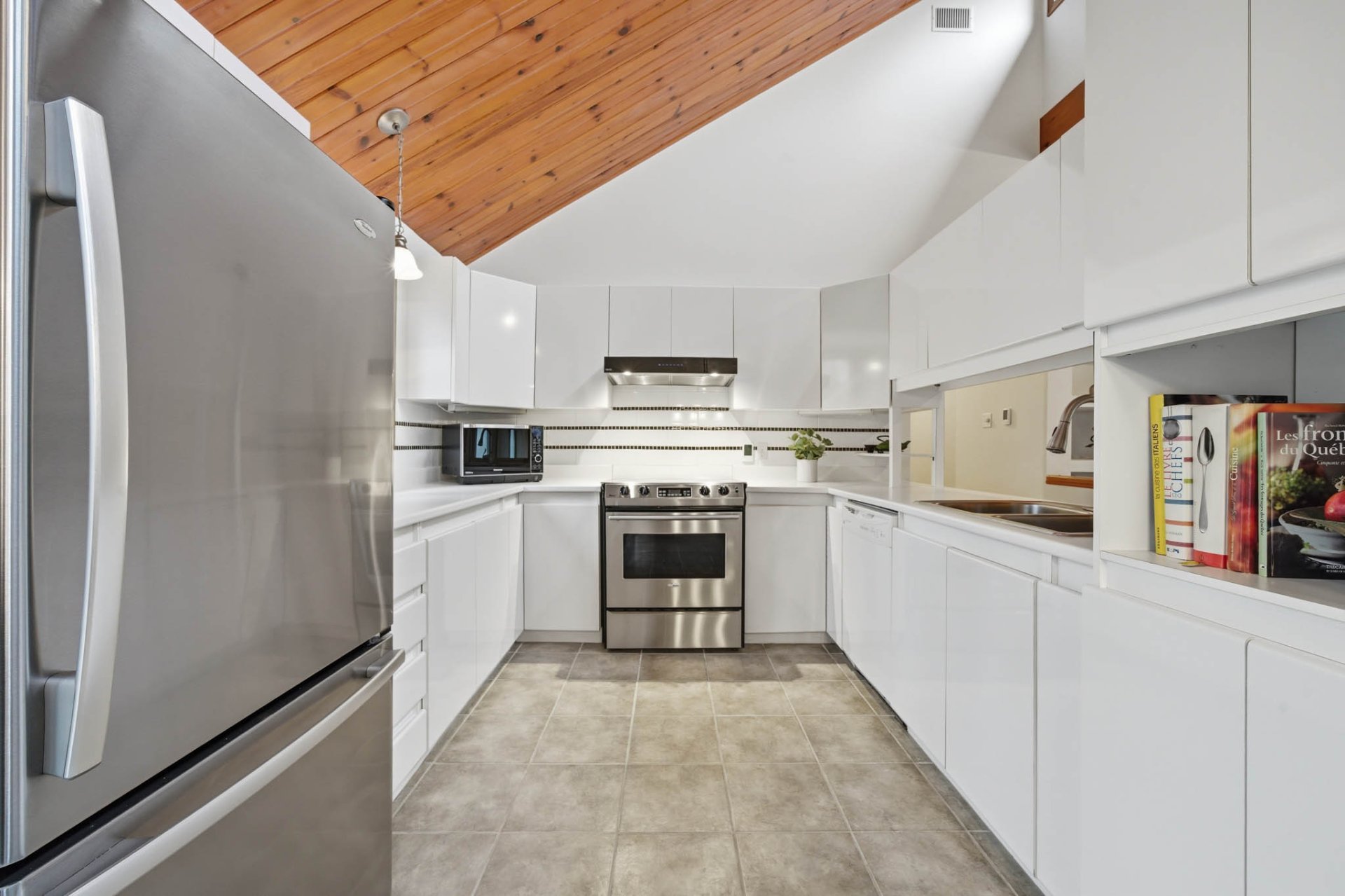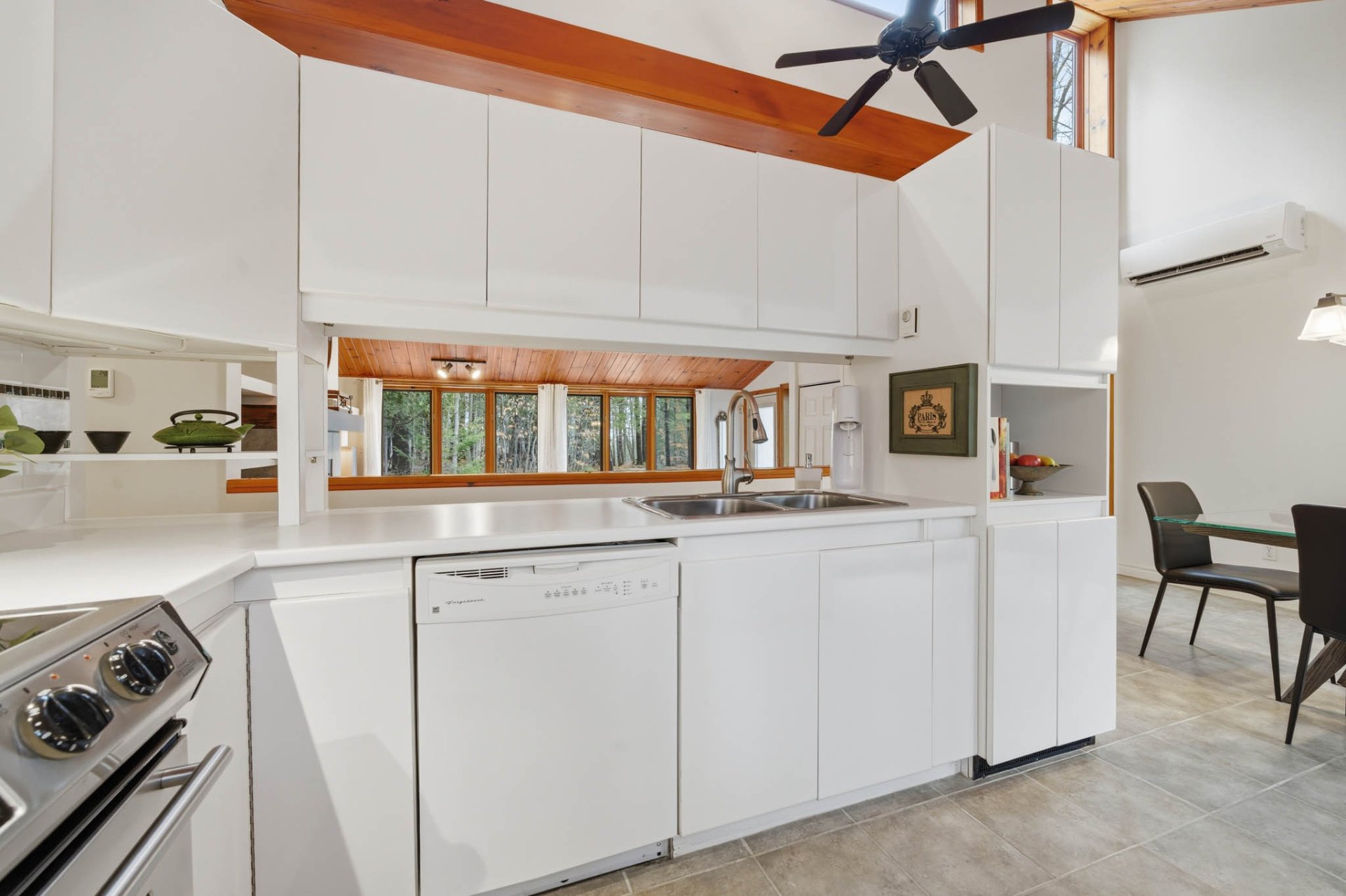 A light-filled family room completes the ensemble, offering remarkable versatility to suit your needs. Two generously sized bedrooms ensure comfort and privacy. The contemporary bathroom features a large separate shower, a discreetly integrated washer and dryer, and heated floors for ultimate comfort.