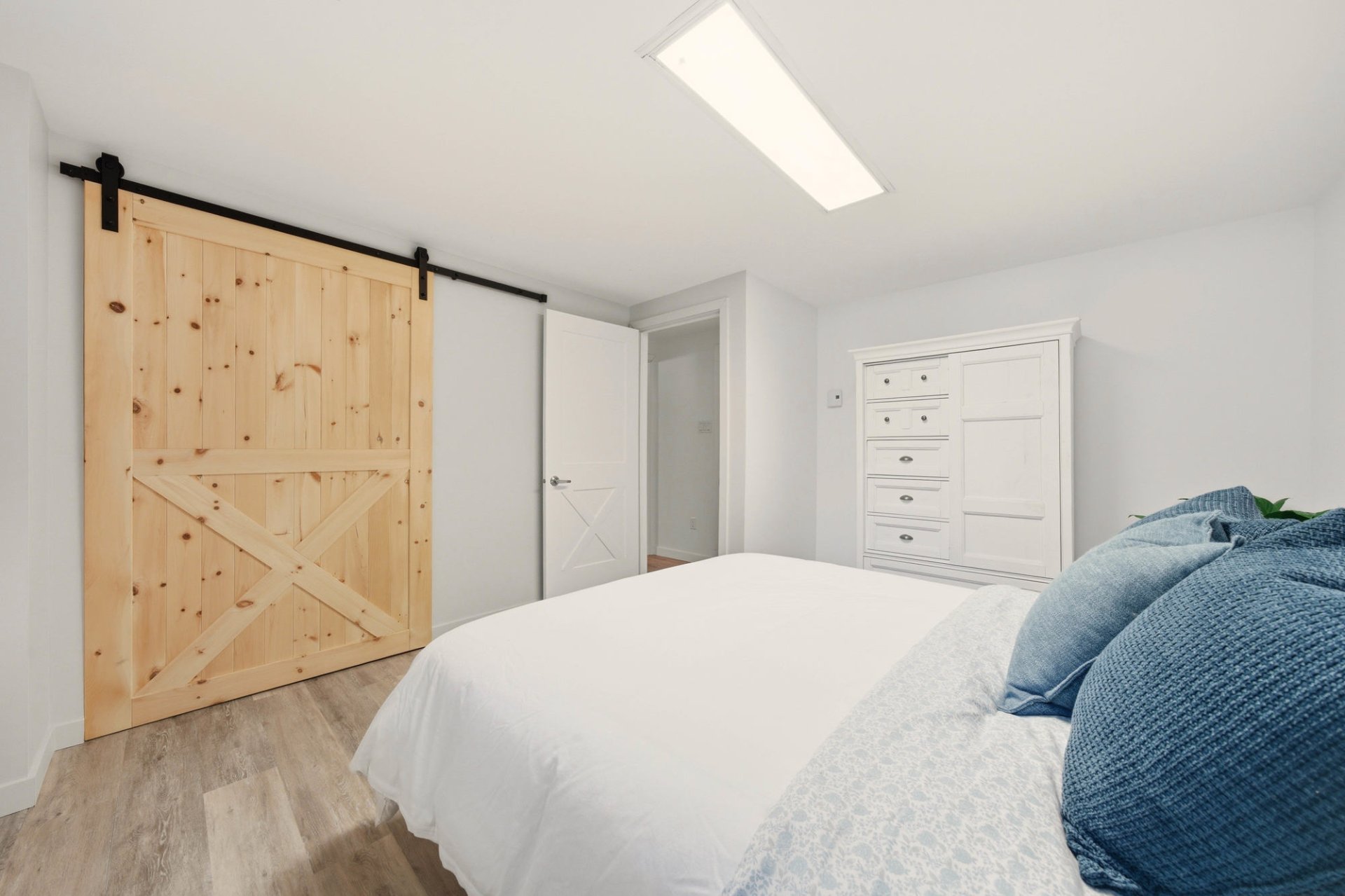 Upstairs, the primary bedroom offers a comfortable and private retreat. This level also features a second spacious bathroom and an open office area, ideal for working from home or creating a bright reading space.