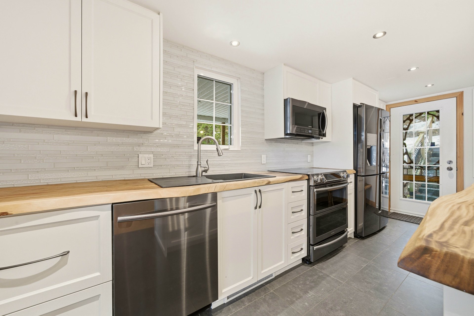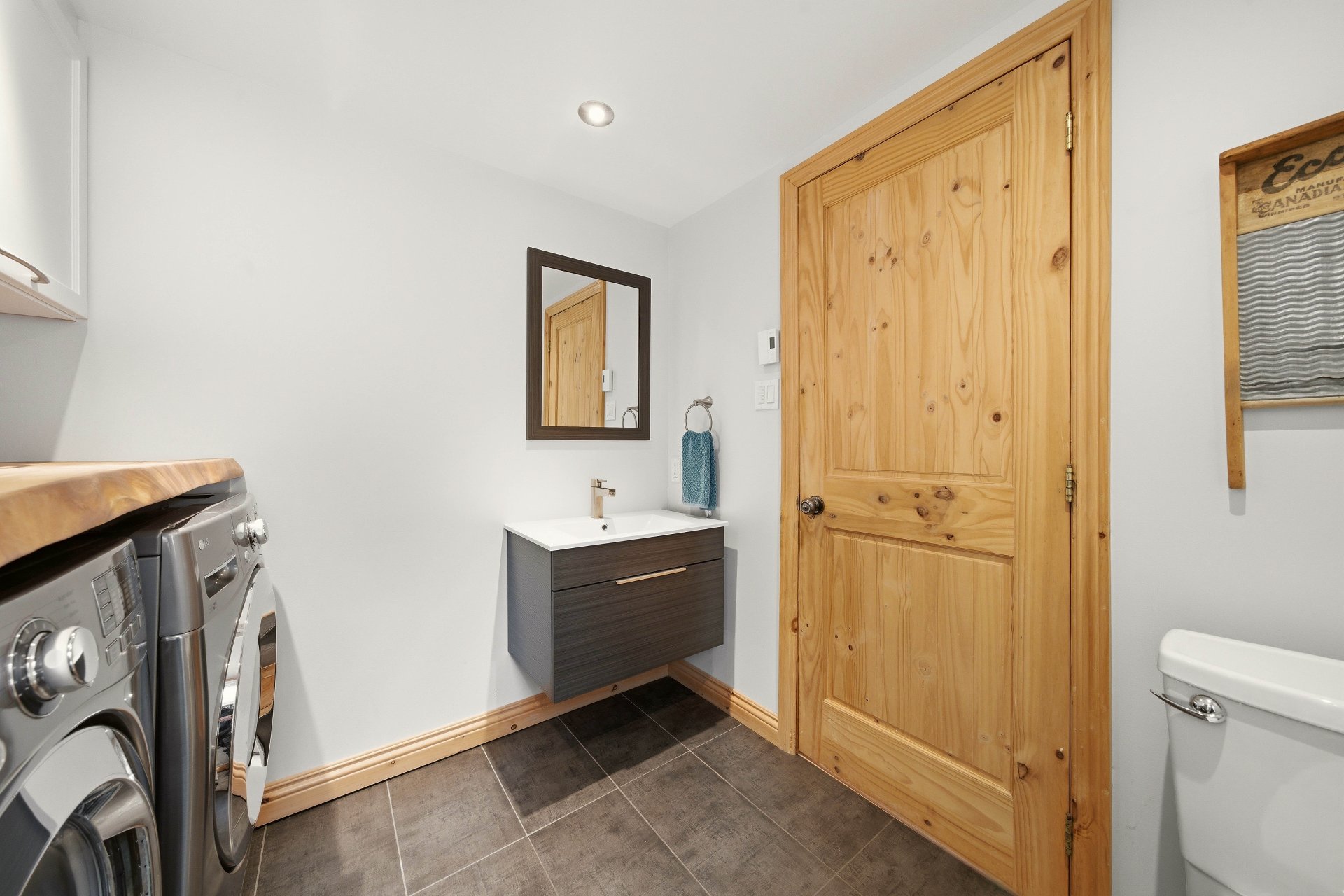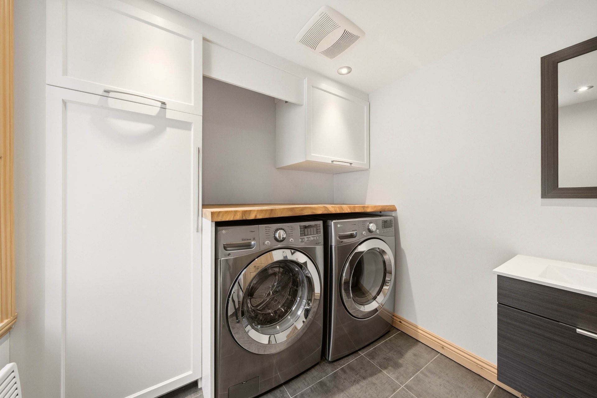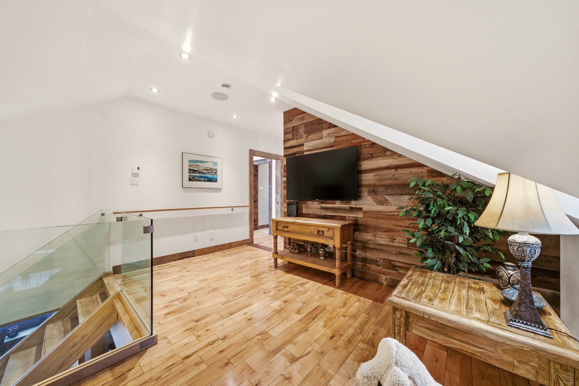 The main floor reveals spectacular living areas, enhanced by abundant windows that capture natural light and magnify the ever-present view of the lake. The kitchen, worthy of the finest creations, features quality materials, generous surfaces, and an impressive central island with a breakfast nook, creating a gathering place that is both welcoming and sophisticated. The open and bright dining room extends this experience, offering an exceptional natural setting. The living room, both elegant and versatile, invites relaxation in a warm and inviting atmosphere. A powder room with laundry facilities completes this level with discretion and functionality.