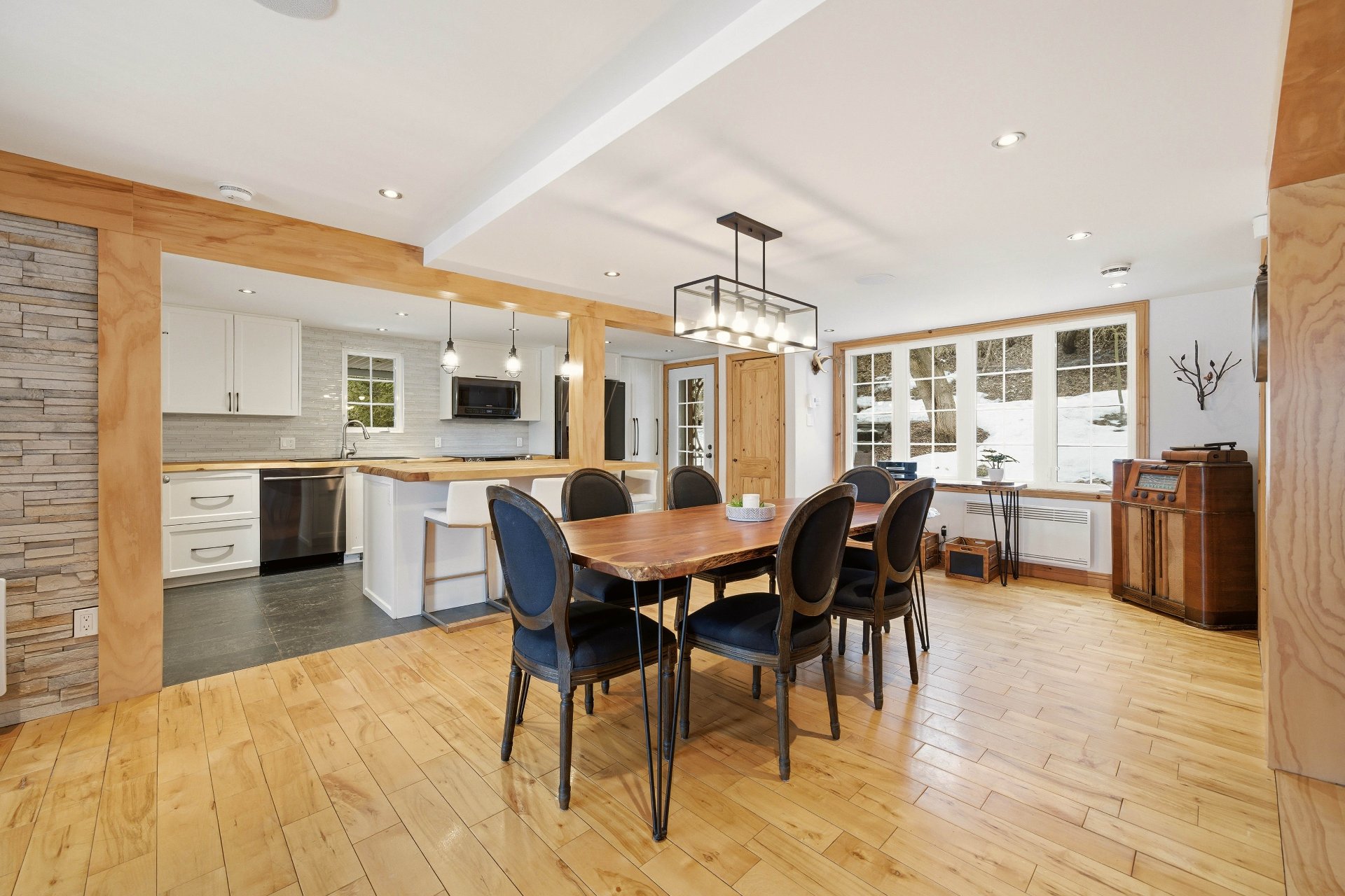 NEARLY 130 FEET ALONG THE SHORES OF LAKE MASSAWIPPI. This unique residence blends contemporary design with rustic touches, featuring bright and refined living spaces. A high-end kitchen with a central island opens onto a flexible dining and living room. Upstairs, a master suite boasts spectacular views, a walk-in closet, and a relaxation area, plus a second bedroom and an elegant bathroom. Ideal for an owner-occupant or investor, with potential annual income of $38,400. Luxury, nature, and serenity close to all amenities.