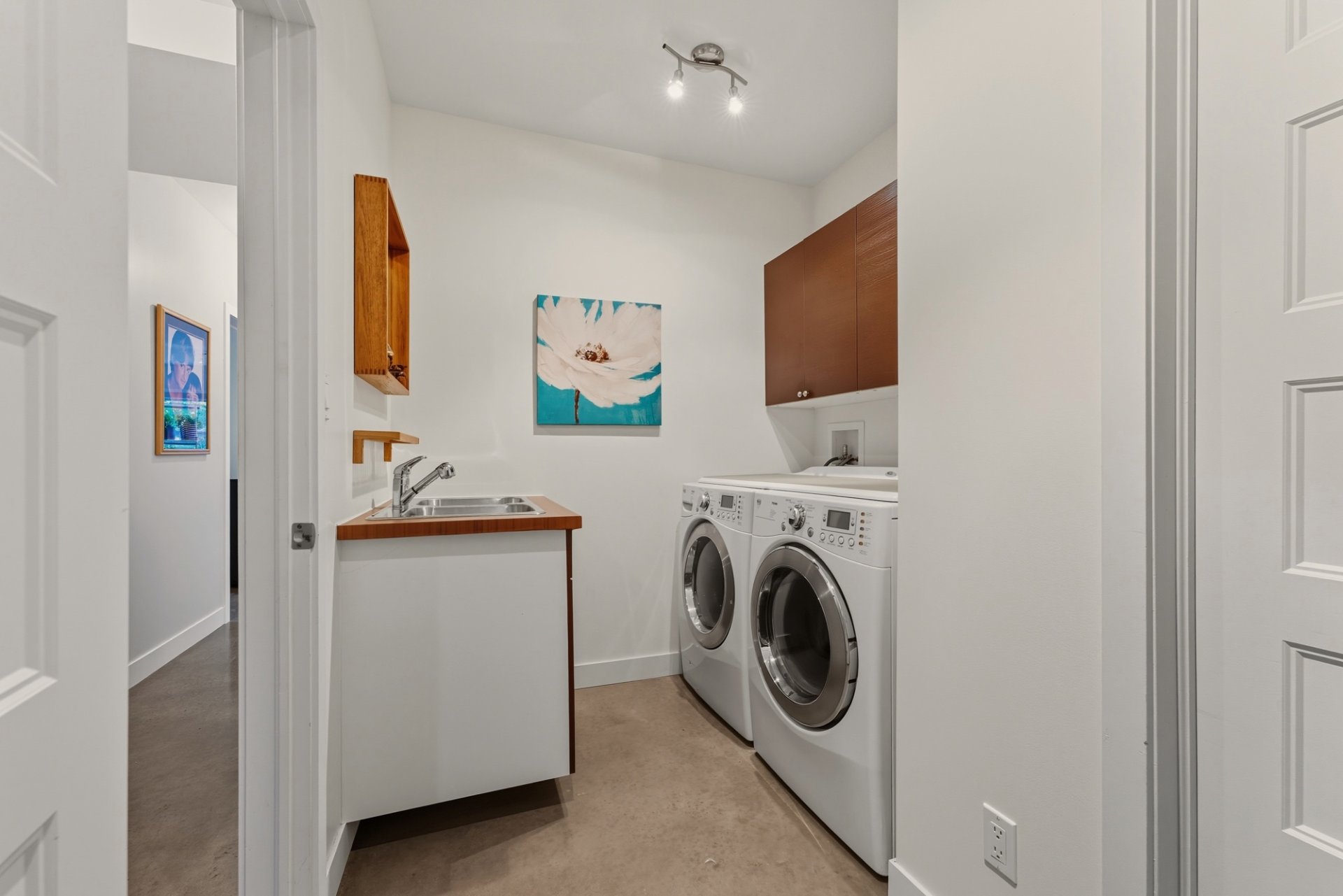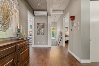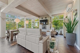 With approximately 2,800 sq. ft. of living space, this home stands out with its 9- and 10-foot ceilings, exposed beams, oversized windows, and zero-emission fireplace. The kitchen impresses with its large central island, high-end materials, and soft-close drawers.