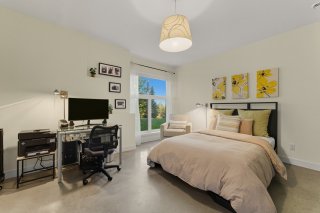 The garden level, fully equipped with radiant floors, features two additional bedrooms, a second living room, and a practical laundry area. Each room is thoughtfully designed to maximize comfort, brightness, and versatility. Generous storage spaces, a central vacuum system, and refined finishes enhance the overall appeal.