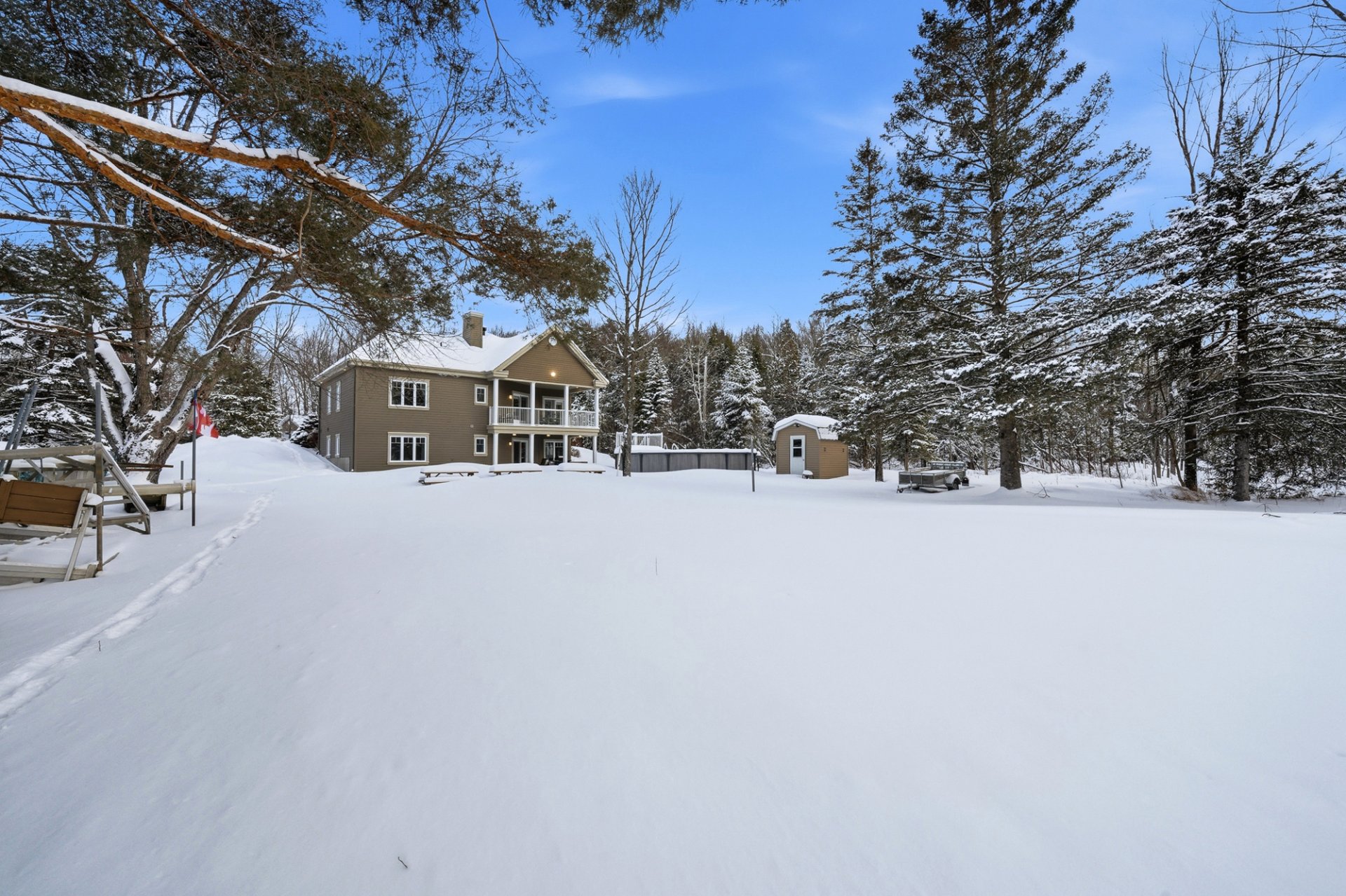 À l'extérieur, la cour boisée et intime propose une grande terrasse, une piscine hors terre chauffée et un accès direct au lac Magog, un privilège rare. Un garage attaché et chauffé, ainsi qu'un second garage sur le terrain, viennent parfaire cette propriété d'exception.